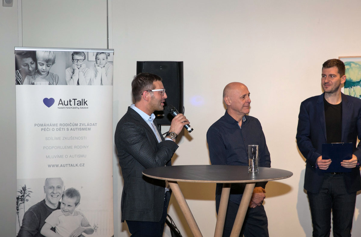 V středu 13. prosince se v pražské Hauch Gallery dražilo. Majitel Hauch Gallery Jan Třeštík velkoryse nabídl překrásné prostory galerie Nadačnímu fondu AutTalk. Fond si přizval na pomoc společnost Adventor a značku MAAPPI, a pod záštitou MUDr. Oldřicha Uttendorfského uspořádal vernisáž a dražbu uměleckých děl sedmi autistických umělců a akademického malíře Josefa Bolfa, který svou kresbu Kluk s ušima do dražby daroval. V úvodu večera se konala nejprve veřejná dražba třech děl, po které následoval tichá dražba všech dalšch vystavených obrazů. Vydražila se díla za téměř sto tisíc. Zisk z dražby jde ve prospěch Nadačního fondu AutTalk, nově vznikající značky MAAPPI a společnost Adventor. Večerem provázel moderátor Petr Říbal, a to bez nároku na honorář. V úvodu večera zazněly dvě sklady v podání Denise Szalbota, mladého klavírního virtuoza s Aspergrovým syndromem, který pak svým uměním prokládal k radosti hostů celý večer.