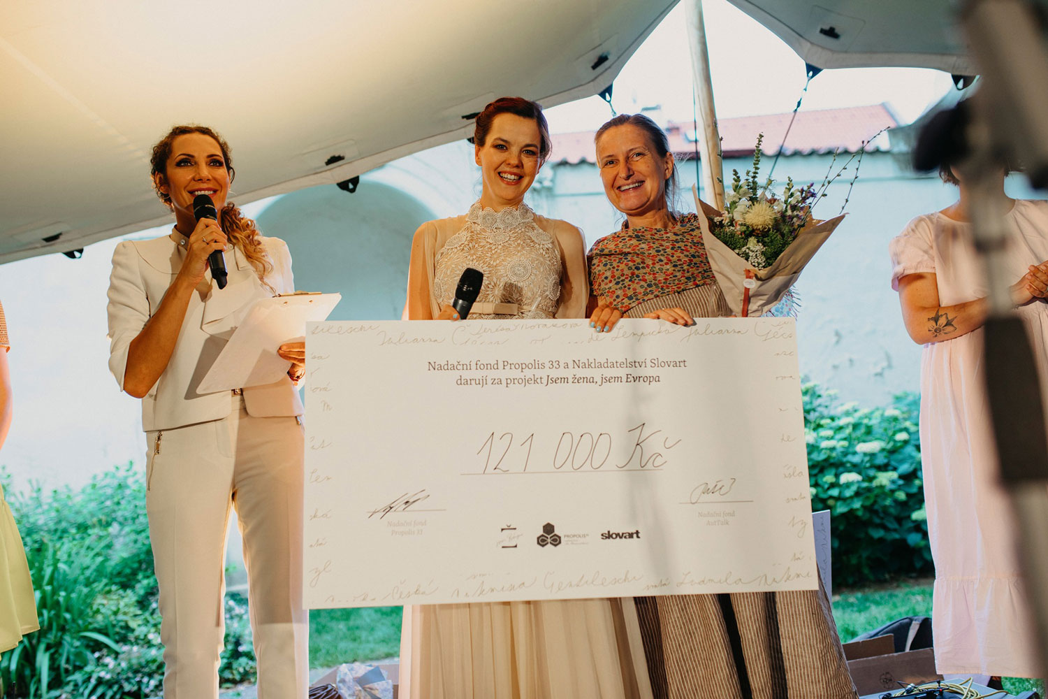 Na překrásné zahradní slavnosti u příležitosti 33. narozenin Lilie Khousnoutdinové a představení Nadačního fondu Propolis33, který bude nadále zastřešovat její filantropické aktivity, jsme převzali šek na 121.000 Kč. Tuto částku přinesla našemu fondu realizace překrásného projektu Jsem žena, jsem Evropa, u jehož zrodu stály Lilia Khousnoutdinova a Michaela Cásková, na kterém spolupracovalo Nakladatelství Slovart, a jednou z jehož tváří byla i naše zakladatelka Kateřina Sokolová. Jsme vděční, že díky této podpoře dokážeme zase o něco pevněji stát na straně rodičů, kteří pečují o autistické děti.