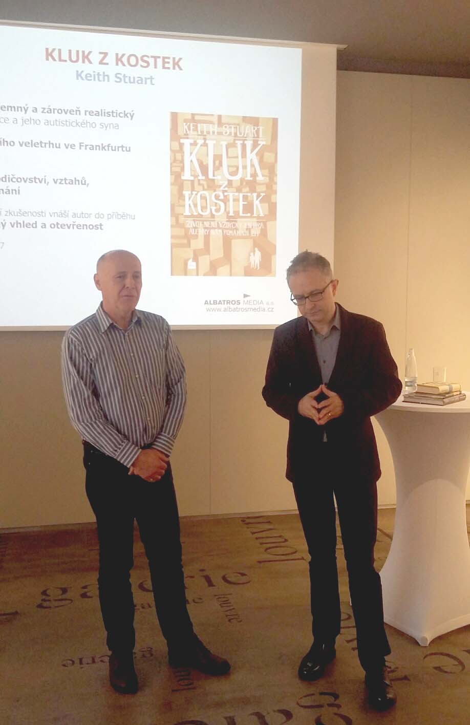 Další dobrá zpráva - o autismu se nejen mluví, ale i píše :-) Ve středu 1. února představil v Galerii café Louvre programový ředitel společnosti Albatros Media Ondřej Mueller novinářům bestseller Kluk z kostek. Příběh muže, který tak nějak zapomněl dát svoji ženě najevo, že ji stále miluje, a který má autistického syna, kterého vůbec nechápe. Rodina se pomalu rozpadá ... Táta se synem pro sebe ale nakoenc objeví společný prostor, ve kterém táta konečně nahlíží do světa svého syna. Hostem Merendy byl táta, Jan Sokol, který hovořil o svých pocitech a zkušenostech s výchovou svého autistického syna Radovana. Máme radost, že spolupráce s Albatros Média touto akcí teprve začíná. Těšíme se!
